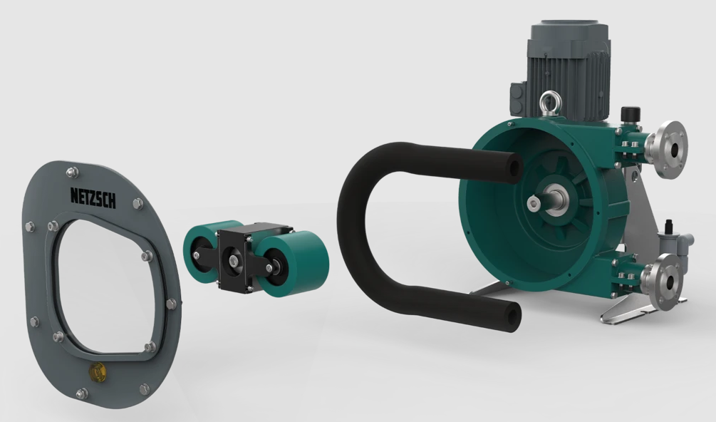 Las bombas de desplazamiento positivo (bombas de manguera) Se utiliza, entre otras cosas, para bombear líquidos con un alto contenido de sólidos. La construcción básica de la bombas de desplazamiento Consiste en una manguera flexible que es apretada por un mecanismo de rotor o rodillo. Este movimiento de compresión transporta el líquido hacia adelante en la manguera. Las bombas de manguera también se conocen como bombas peristálticas, ya que el mecanismo mediante el cual se aprieta la manguera recuerda a los movimientos de contracción de los músculos en el peristaltismo humano. Puede utilizar bombas de manguera en diversas industrias, como la química, la de procesamiento de alimentos, la farmacéutica y la de tecnología medioambiental. De este modo se beneficiará de un transporte cuidadoso y preciso.dosificar.